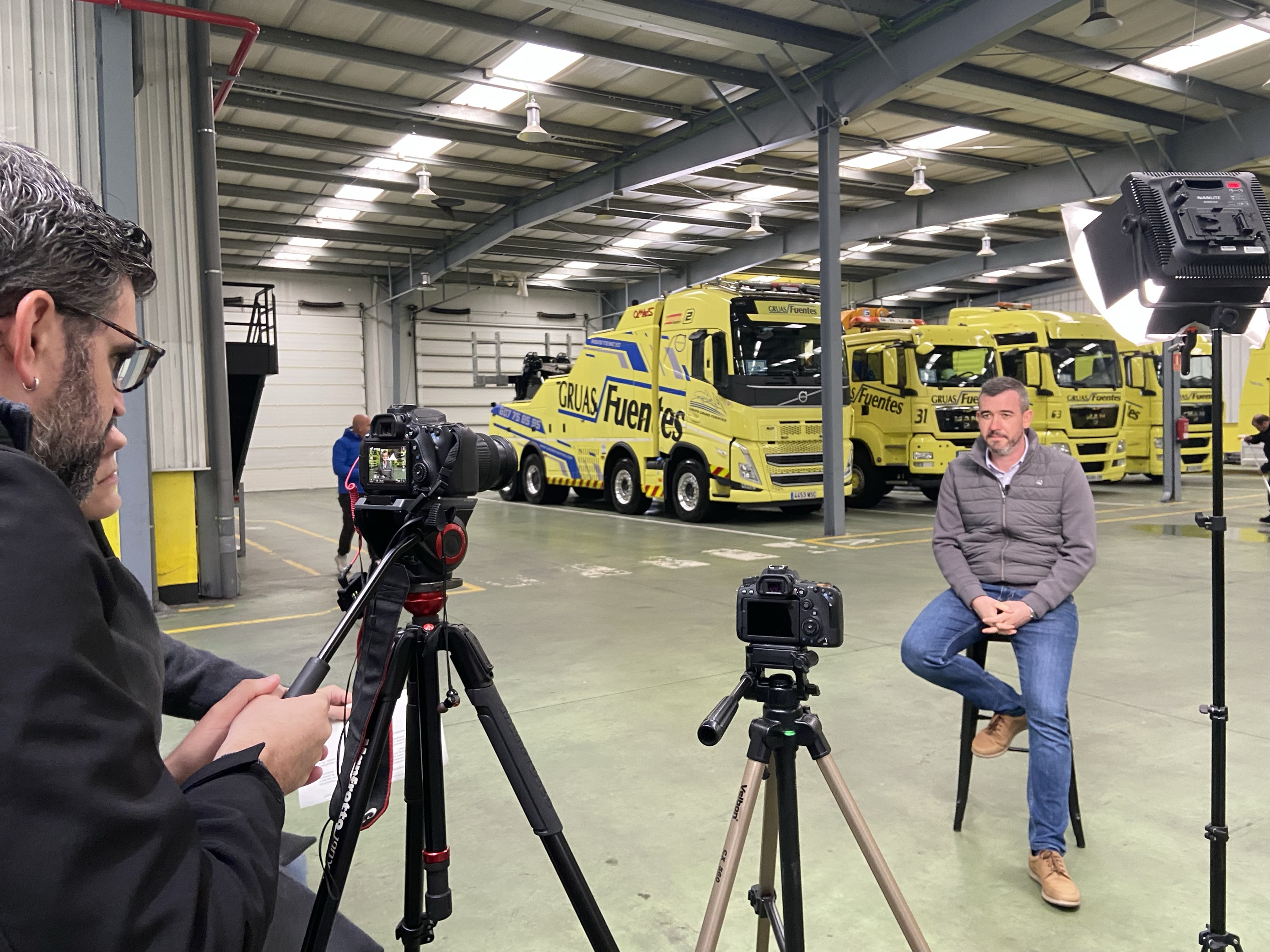 La fase de producción supuso un gran reto de coordinación y logística, ya que fue necesario cuadrar agendas, gestionar desplazamientos y organizar rodajes tanto en las oficinas de Allianz Partners, como en las naves de los gruistas en Madrid y en distintos puntos de Valencia. Uno de los momentos más significativos fue el rodaje en la zona cero de la DANA, donde grabamos imágenes reales y testimonios in situ de quienes vivieron la emergencia desde primera línea.